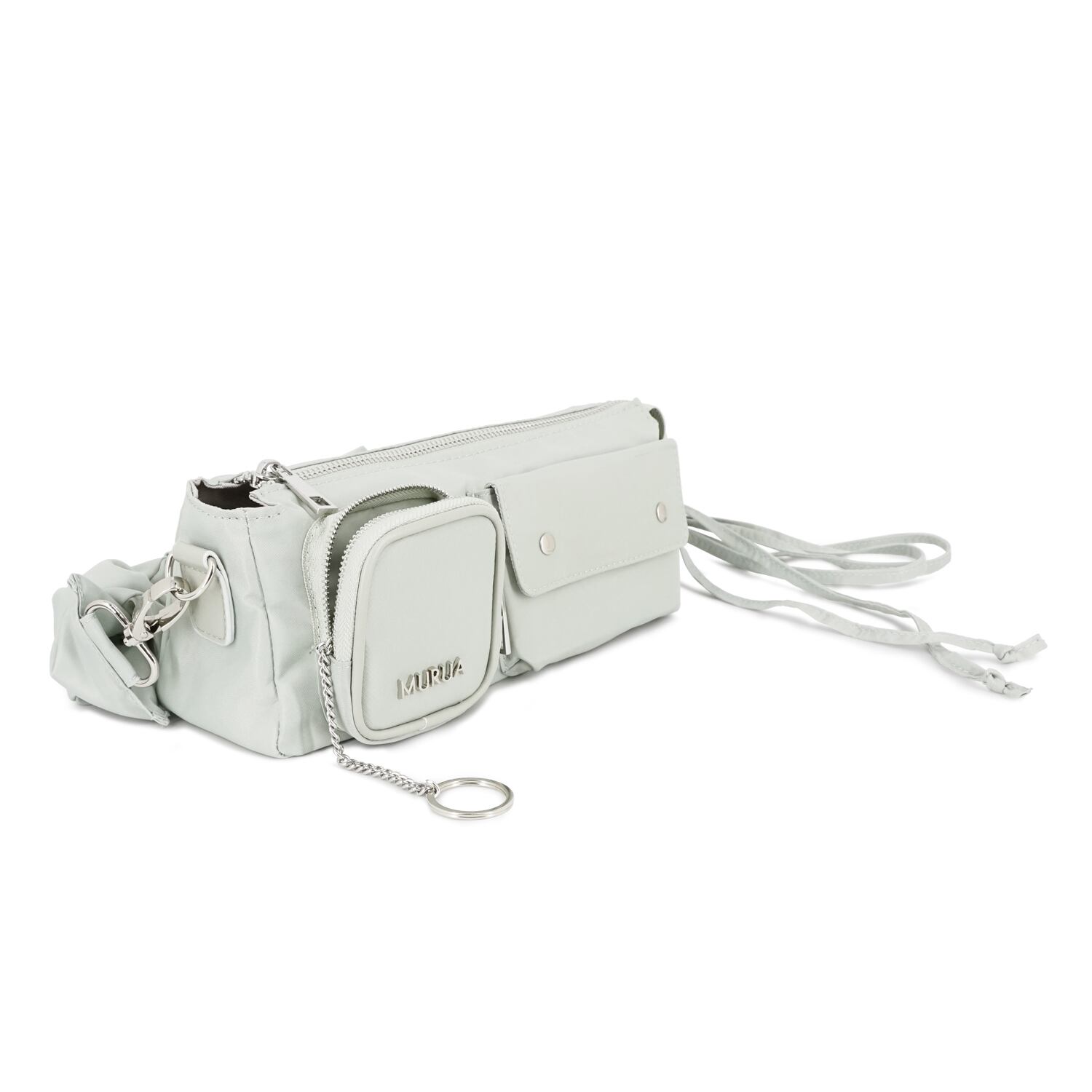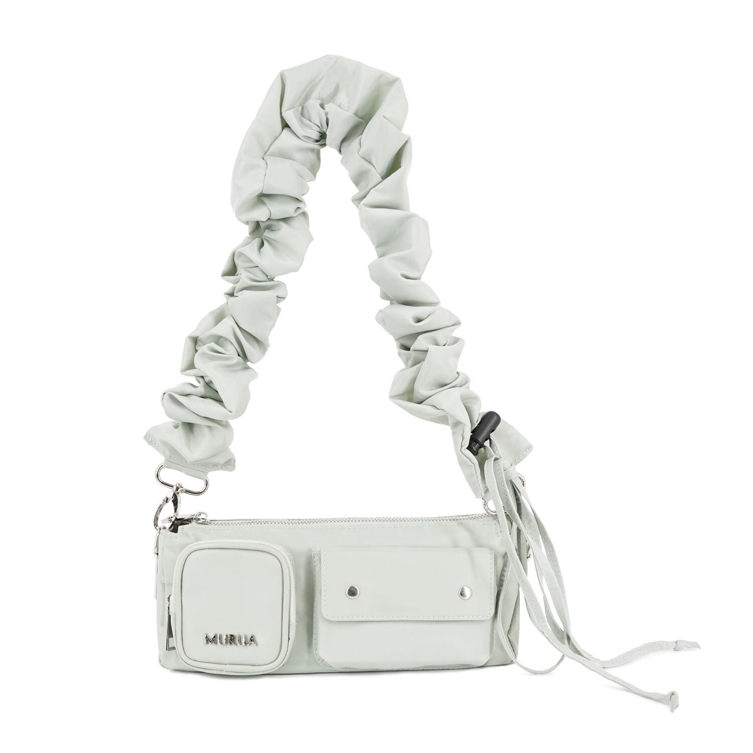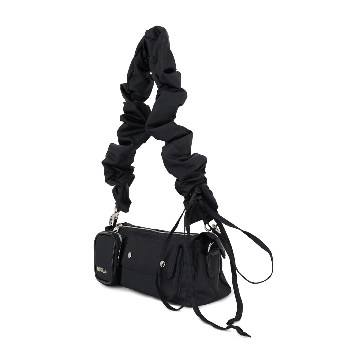 2種類のショルダーは1つはドローコードを絞る事でフリルショルダーへと変わり、もう1つはベーシックなフェイクレザーを使用したショルダー。ガーリーな印象のあるフリルもアウトポケットの辛さをプラスする事でガーリー過ぎない印象に。