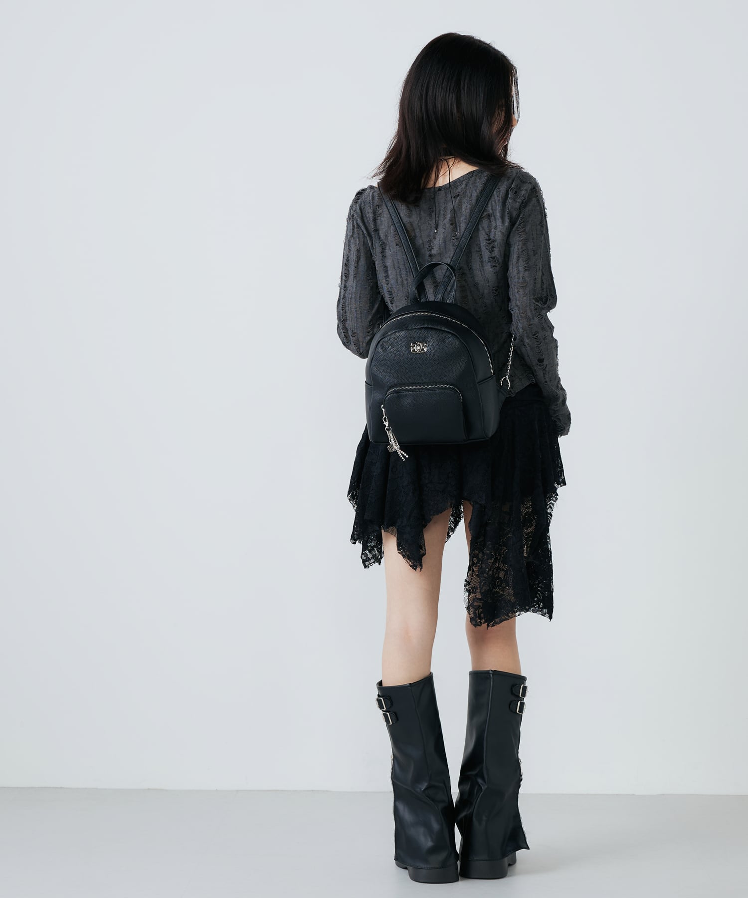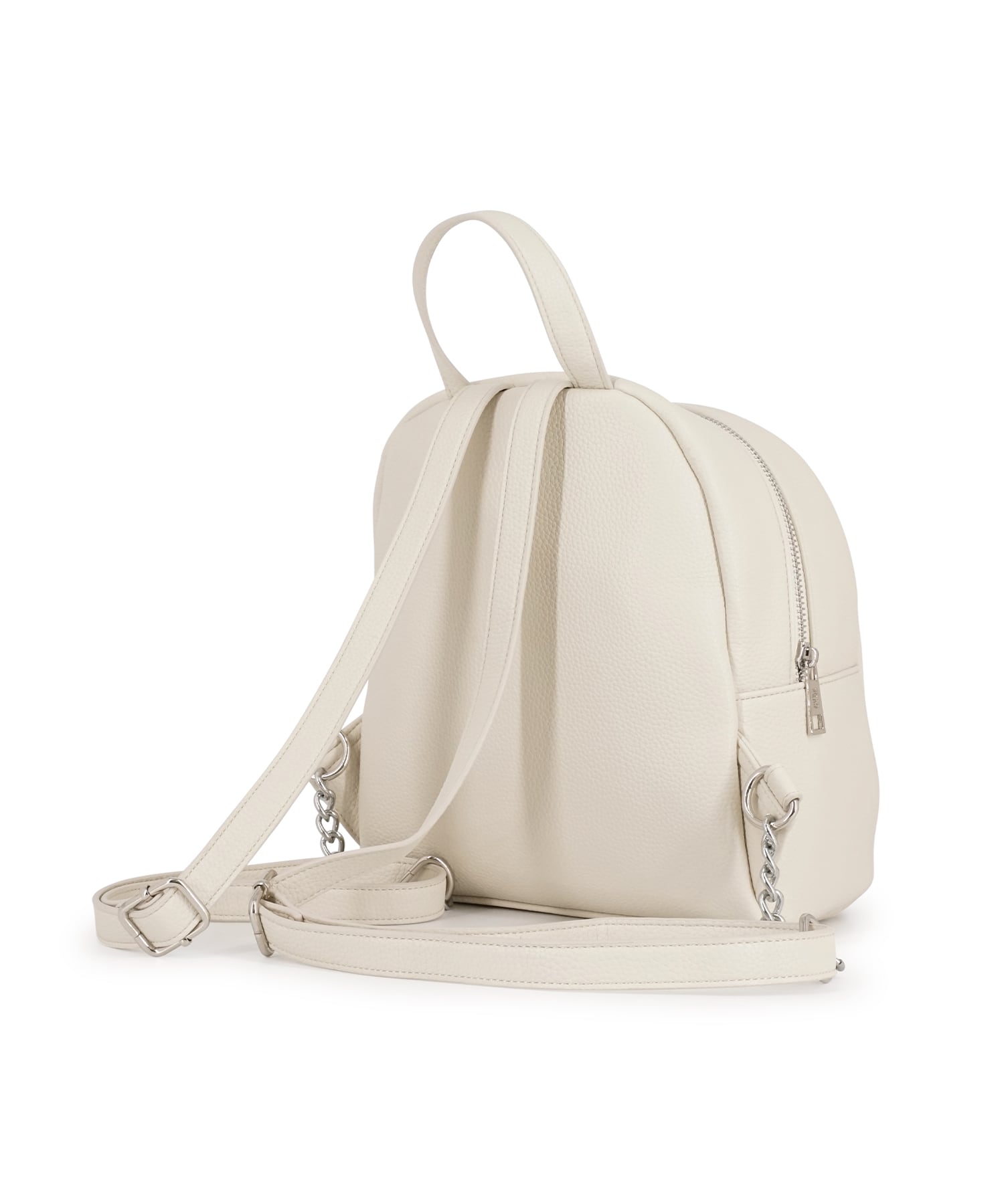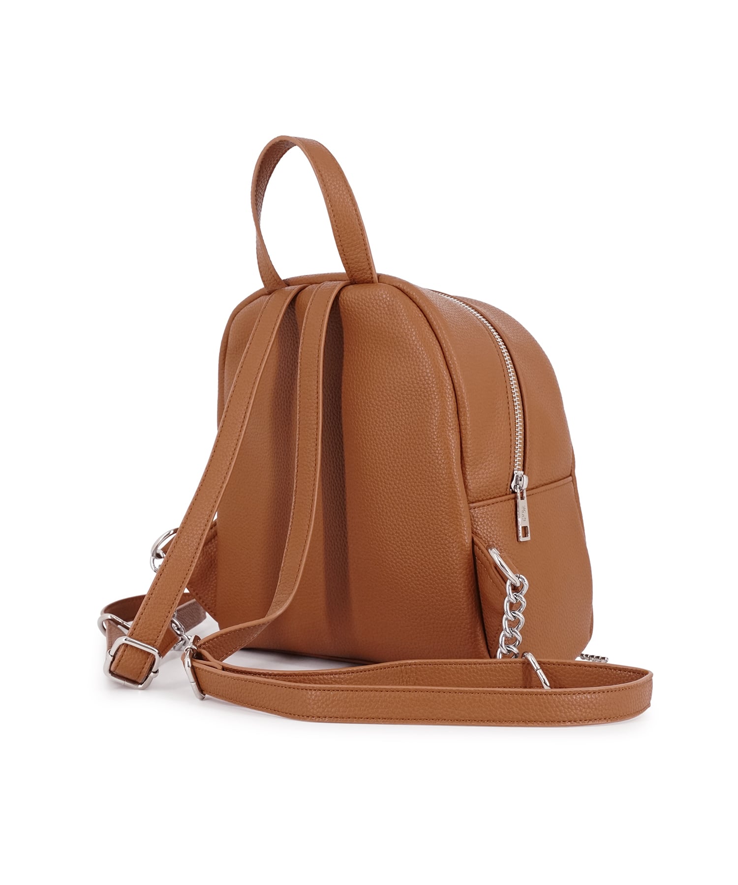 本体には手馴染みの良いシボ感のあるフェイクレザーを使用。女性らしいミニサイズに仕上げタウンユースにも。ショルダーにチェーンを部分使いし、カジュアルになり過ぎないよう仕上げました。