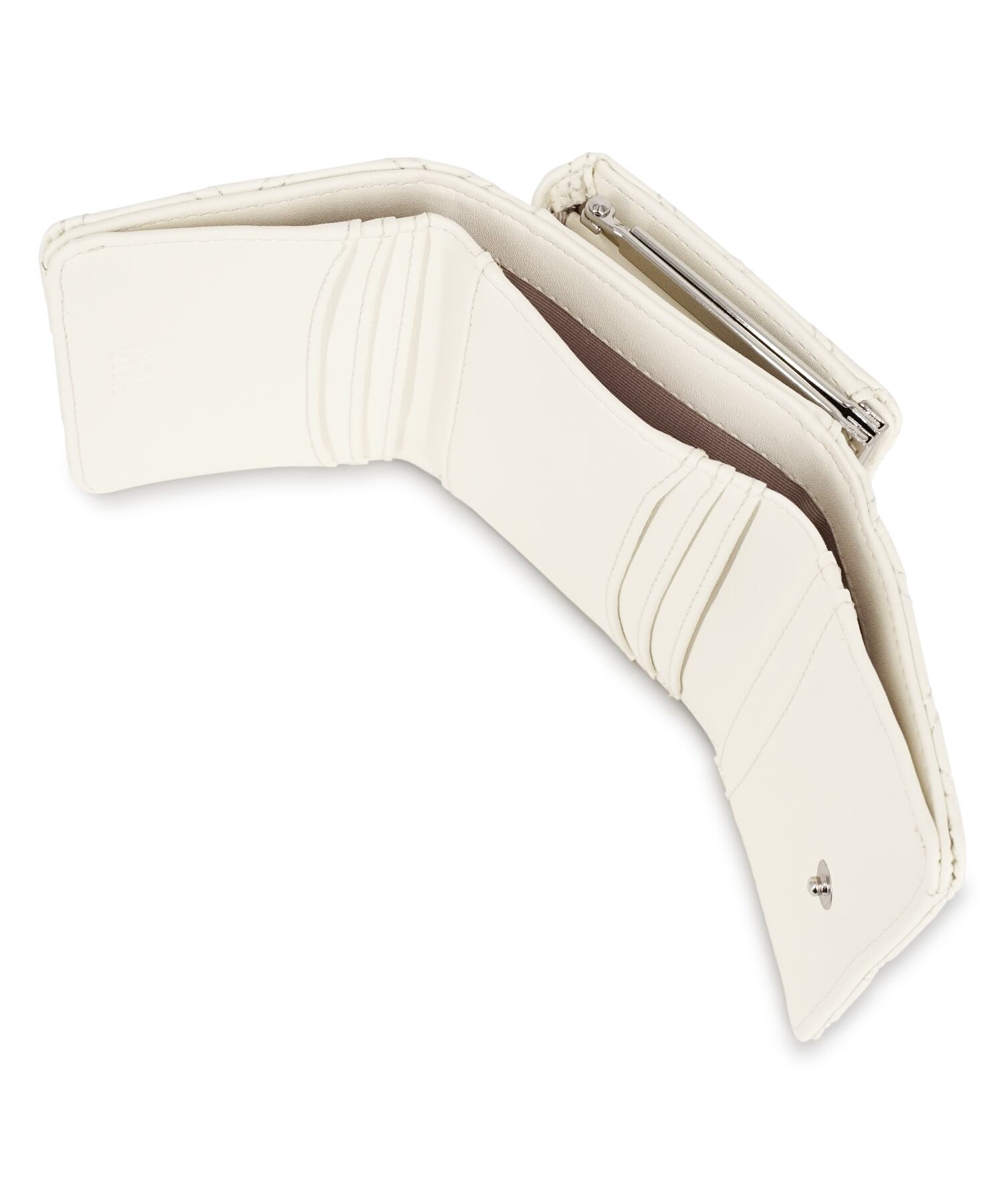 財布上部の口金の金具がアクセントになる口金デザイン。