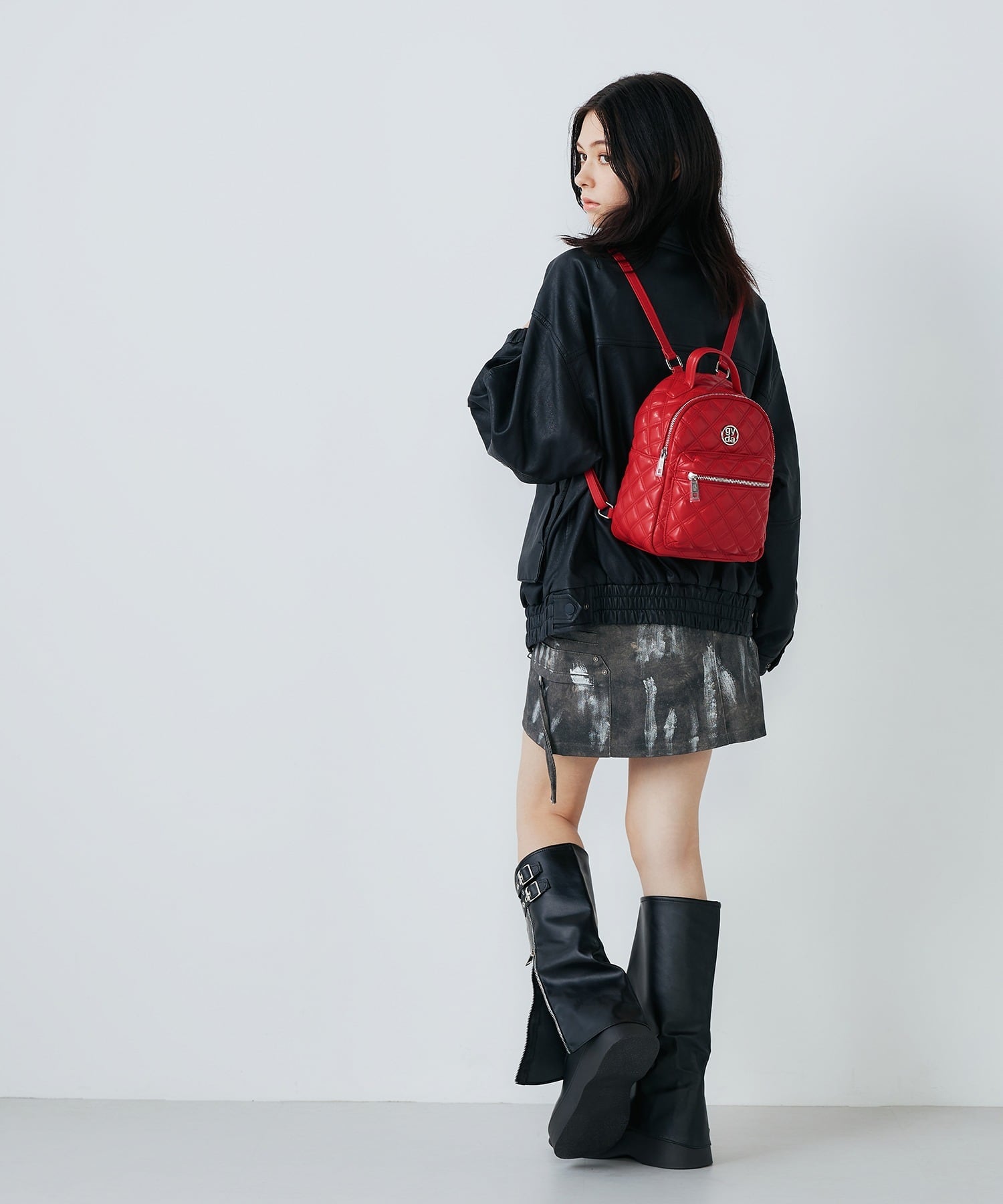 タウンユースにピッタリなサイズ感のミニサイズに仕上げたリュック。フェイクレザーを使用する事でカジュアルになり過ぎるのを防いでくれます。