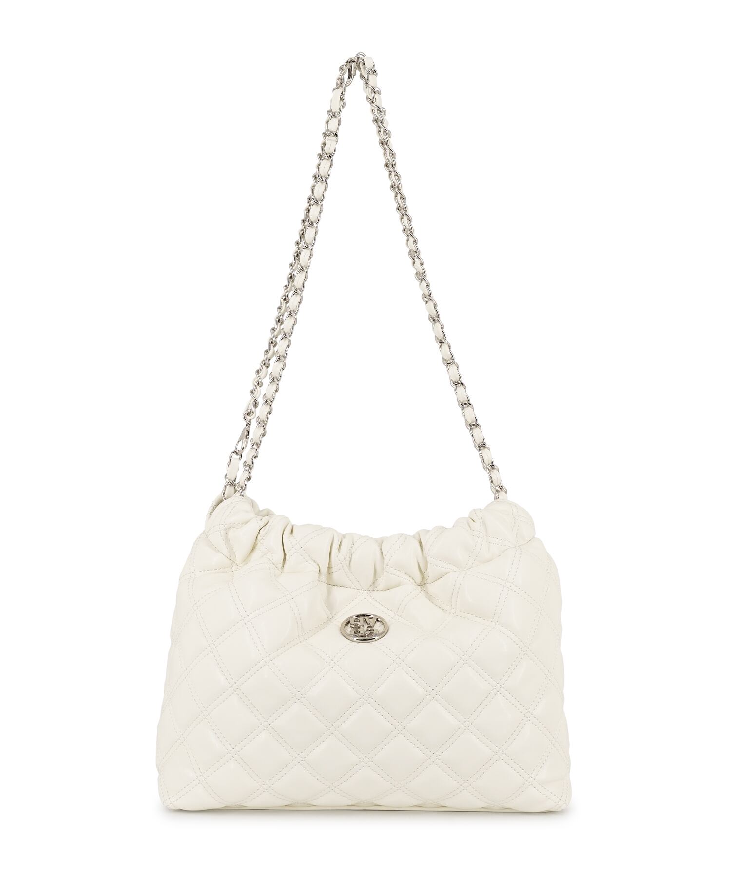 チェーンショルダーを使用する事でトレンド感のあるフェイスに仕上げたトートバッグ。開口部にギャザーを施す事で全体のフォルムに動きを加えています。