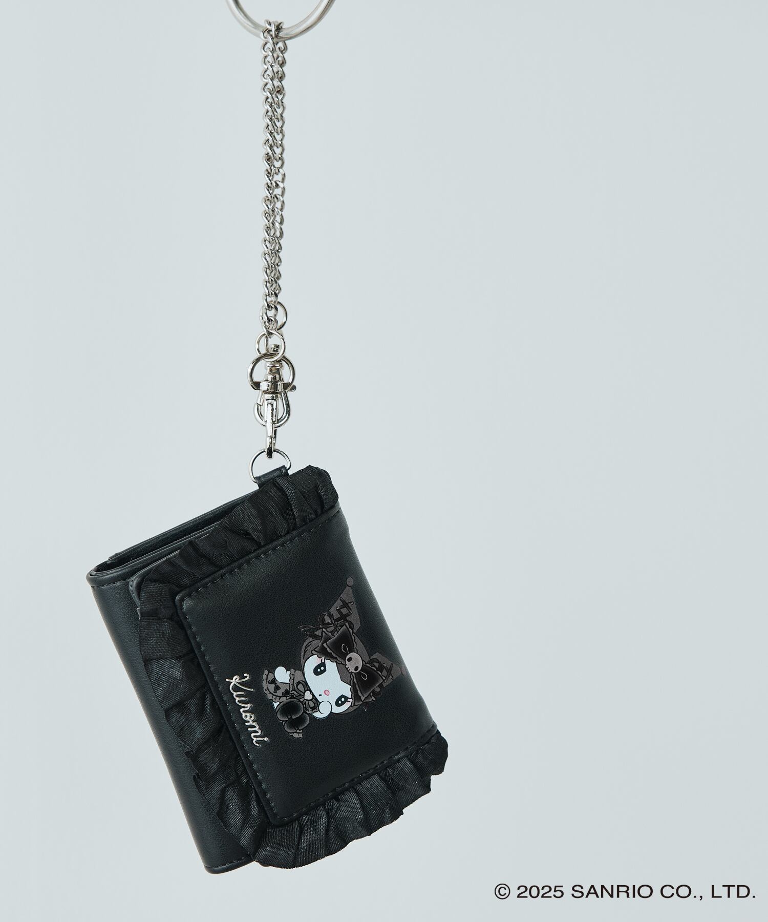 クロミとのコラボアイテム。レディーライクな仕上がりにする為、小銭のフラップにフリルを施したデザイン。素材にこだわり、女性らしい柔らかさを感じるフリルに仕上げました。本体には華奢なチェーンを付け、手首を通す事でアクセサリー感覚でお持ちいただけるようにこだわったアイテム。