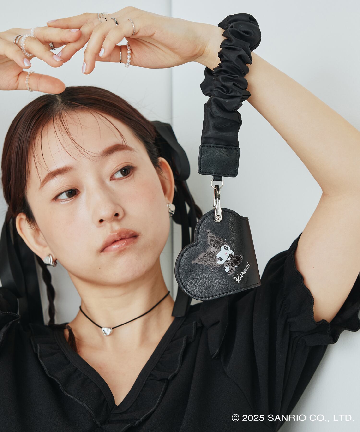 クロミとのコラボアイテム。ギャザーストラップの付いたハート形のキーケース。スマートキーも普通のカギも付けられるネジ式Dカンを採用し、簡単に取れてしまう心配がありません。勝手に開いてしまわないよう、ホックで閉めるように仕上げました。