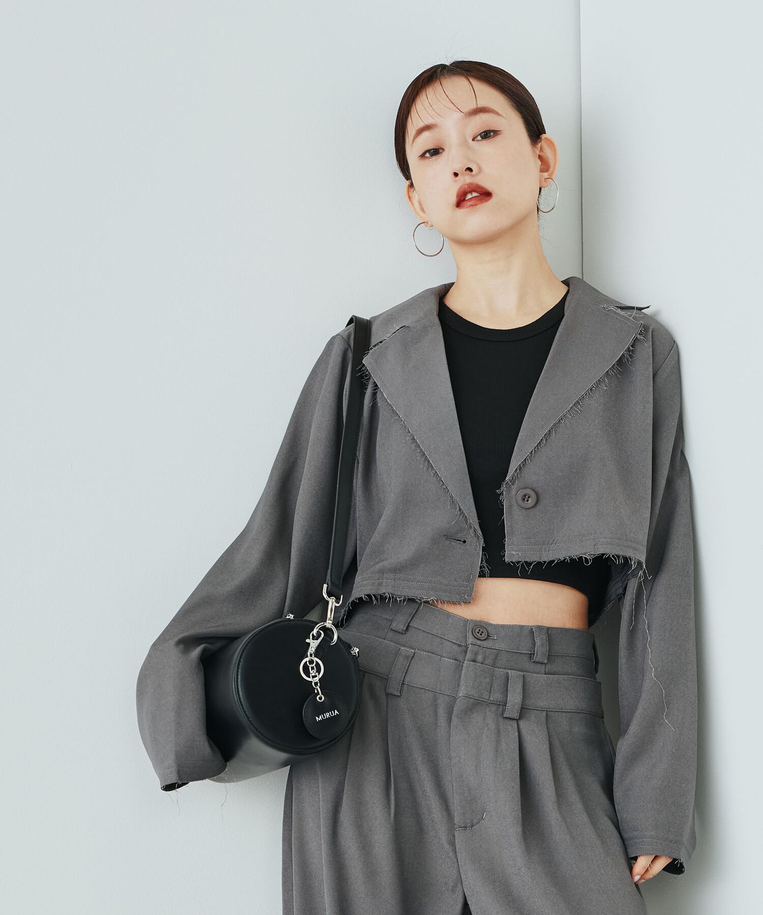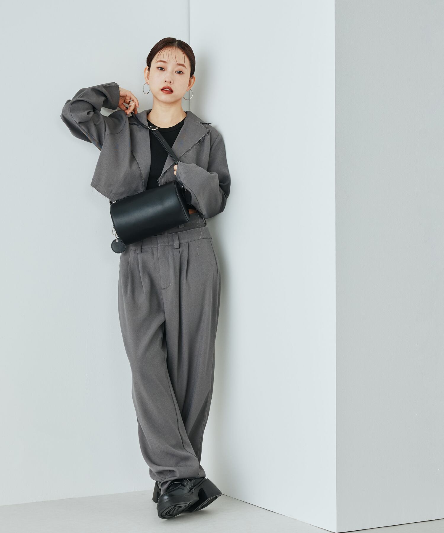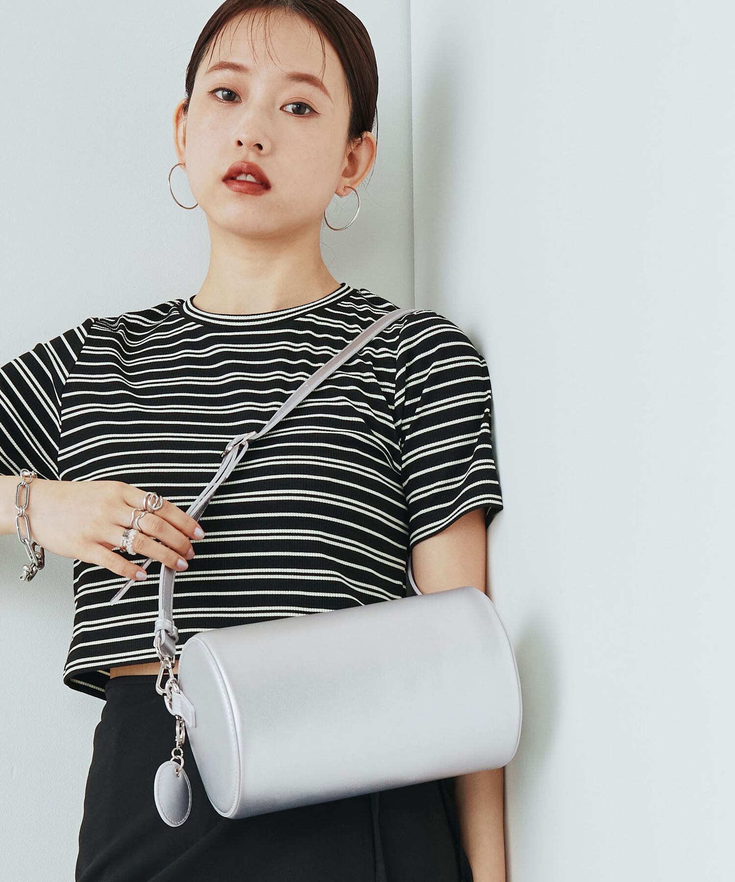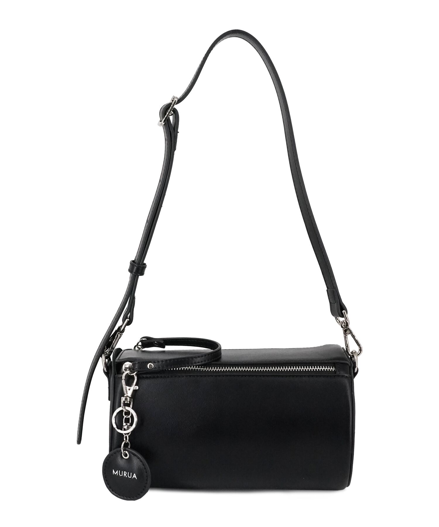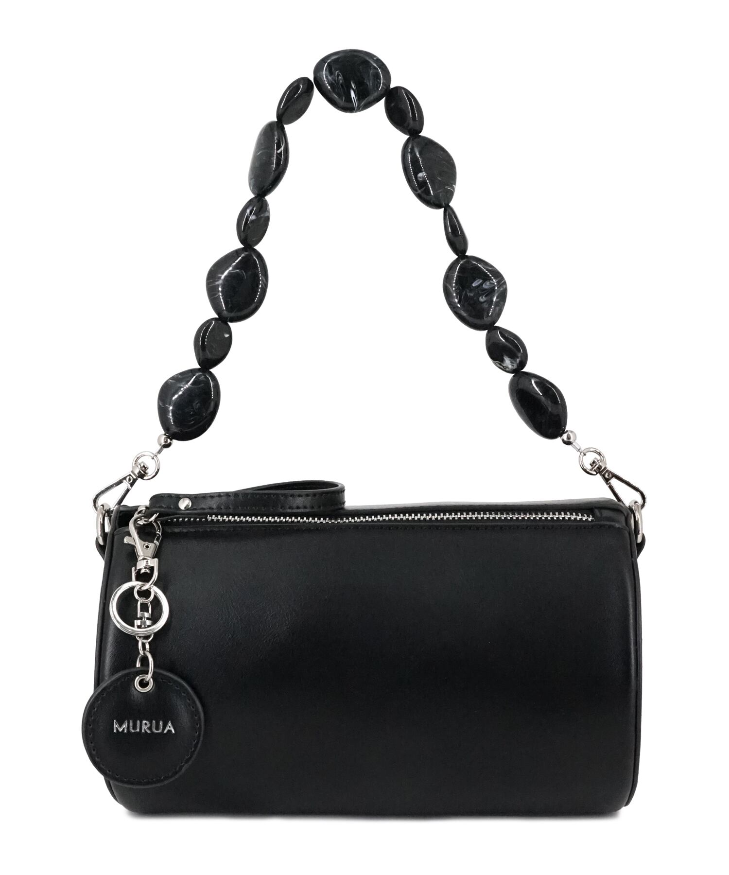 ストーン風のショルダーとフェイクレザーのショルダーが付属したシリンダーバッグ。丸型の弱みでもある荷物の取り出しにくさをダブルがファスナーを採用する事で解消させました。デイリーユースからオケージョンまで幅広いシーンでお使いいただけます。