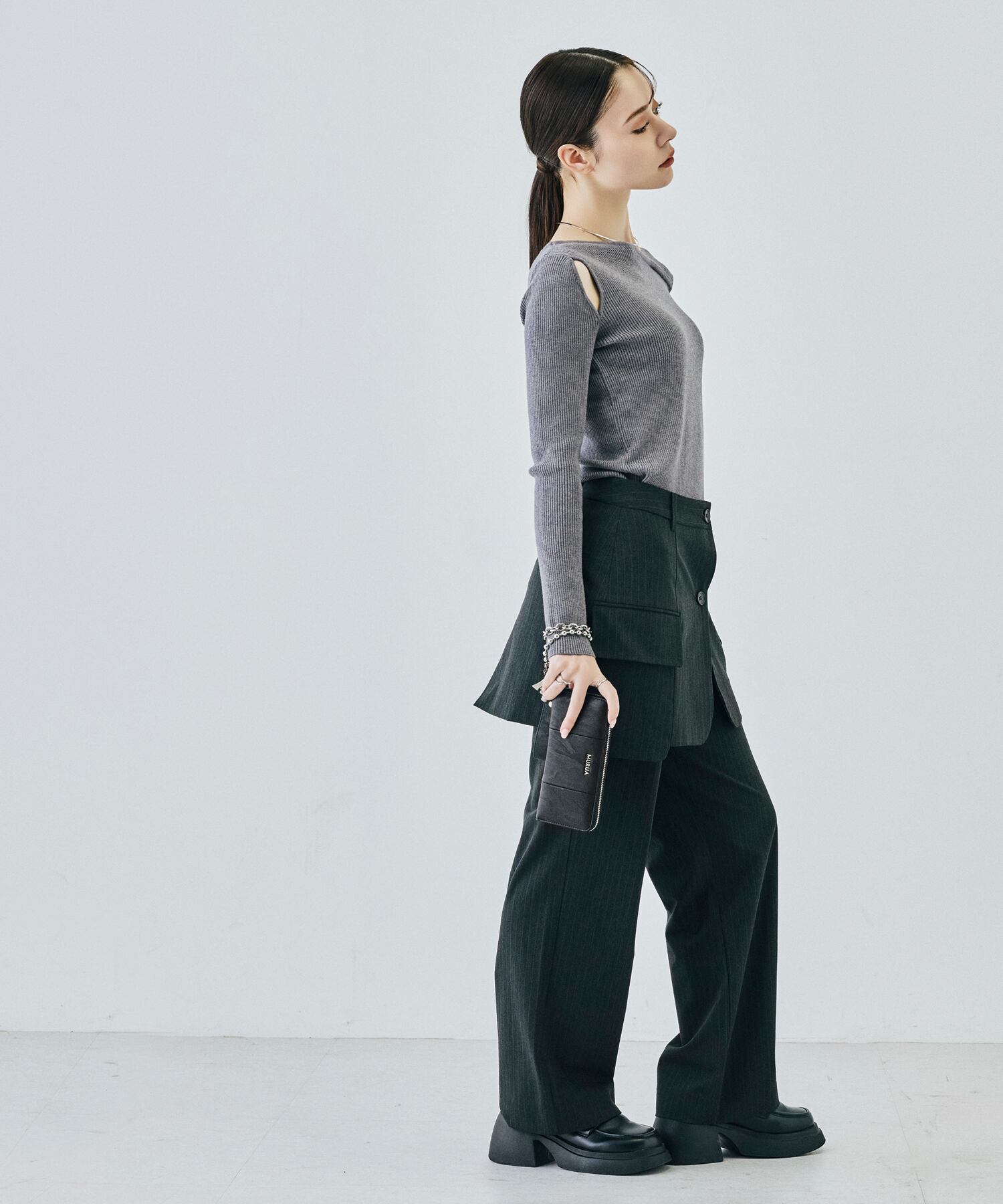 メリハリの効いたスタイルシルエットを軸に女性らしいフェミニンさをプラスし独自のムードを作り出す
