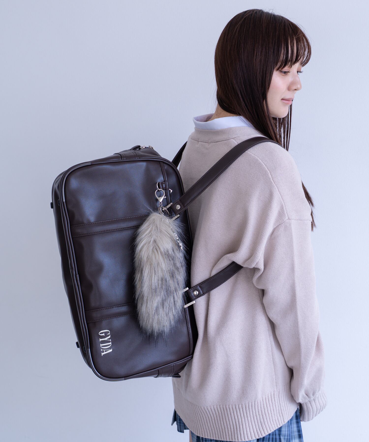 ギャル感たっぷりなスクールバッグ。ファーしっぽはその場のシーンに合わせて取り外し可能。裏地にはヒョウ柄の総柄を使用する事でより今っぽく、GYDA感をプラスしてくれます。「普通のスクバはつまらない」そんな方におすすめのスクバです。